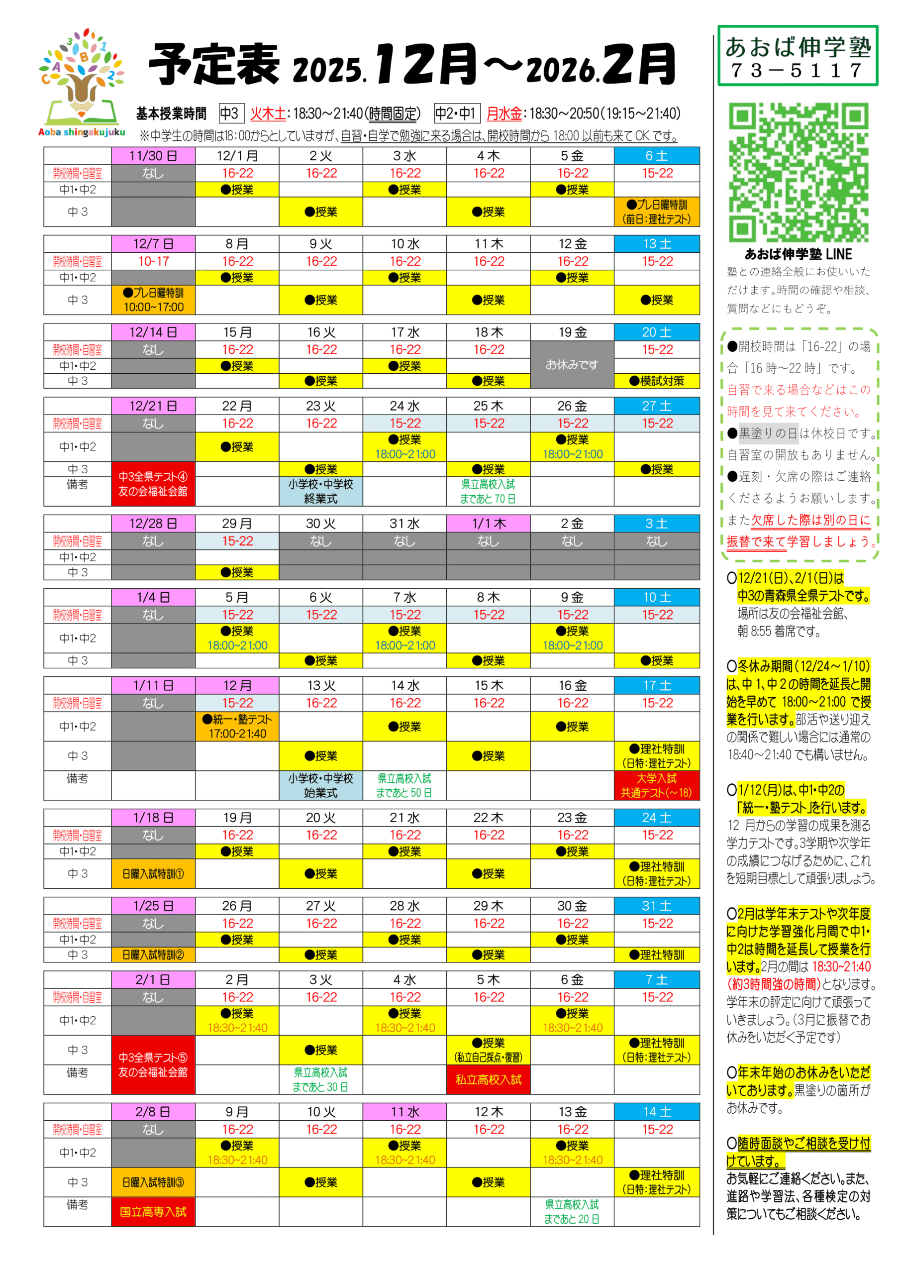 最新の時間割・予定表はこちら