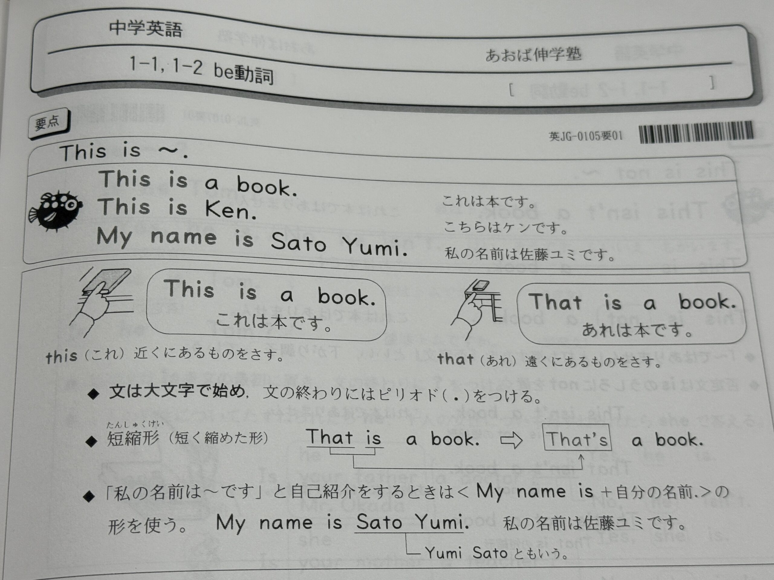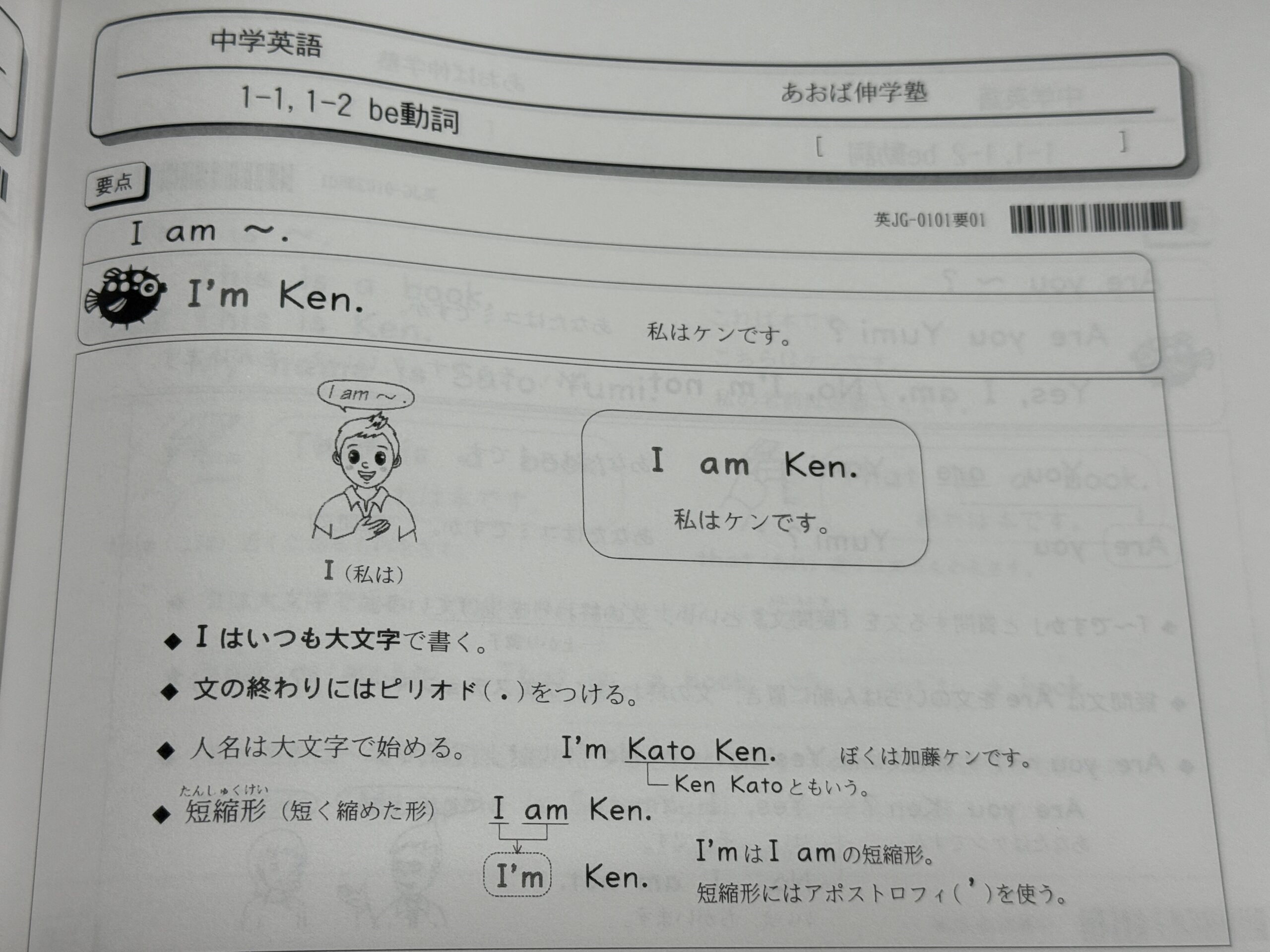 英語が苦手な子はここ(I amやYou areの文)からスタートして、