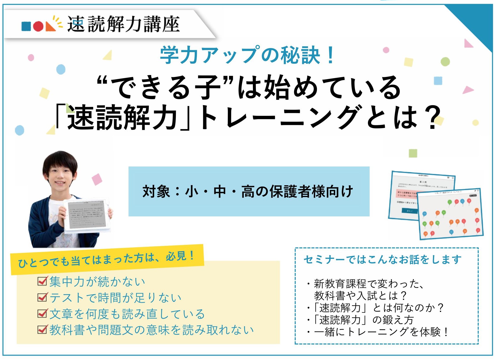 この度、当塾で生徒たちが取り組んでいる「速読解力講座」の オンラインセミナーを開催することになりました🎉